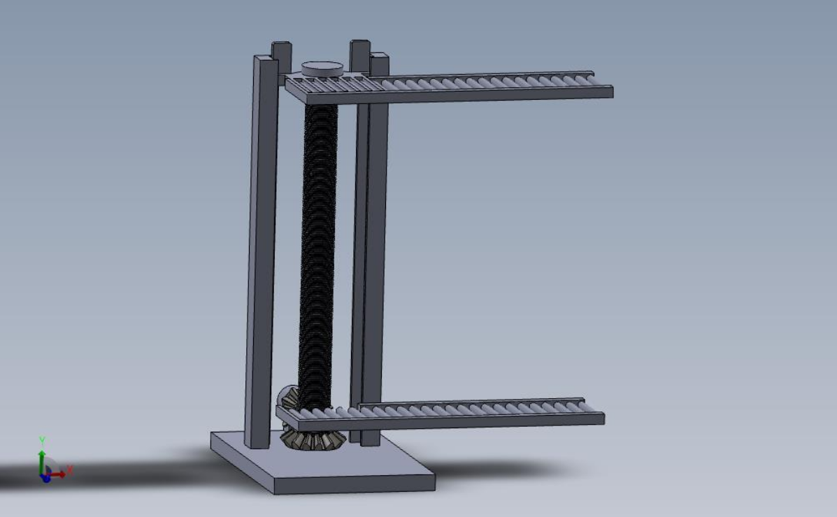 As part of a simulation study using SolidWorks, I designed a vertical lift conveyor to address the challenges of efficient vertical transportation of goods in space-constrained industrial environments.The project aimed to design a compact, reliable conveyor system capable of moving objects vertically within a limited footprint.